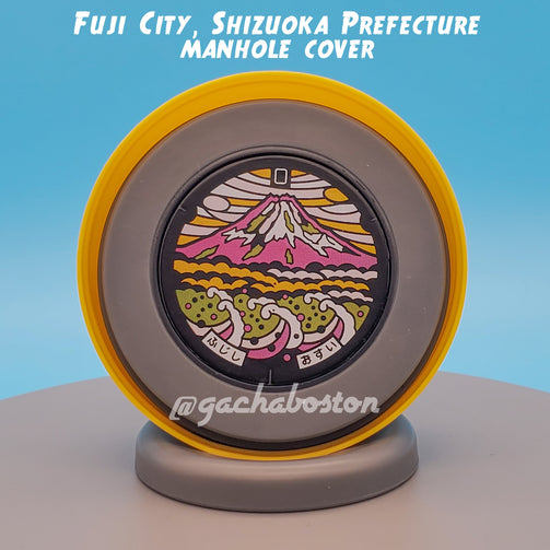 - World heritage site Mount Fuji towers behind the whitecaps of Suruga Bay in this manhole cover. The design also recalls the Thirty-Six Views of Mount Fuji by ukiyo-e artist Katsushika Hokusai.